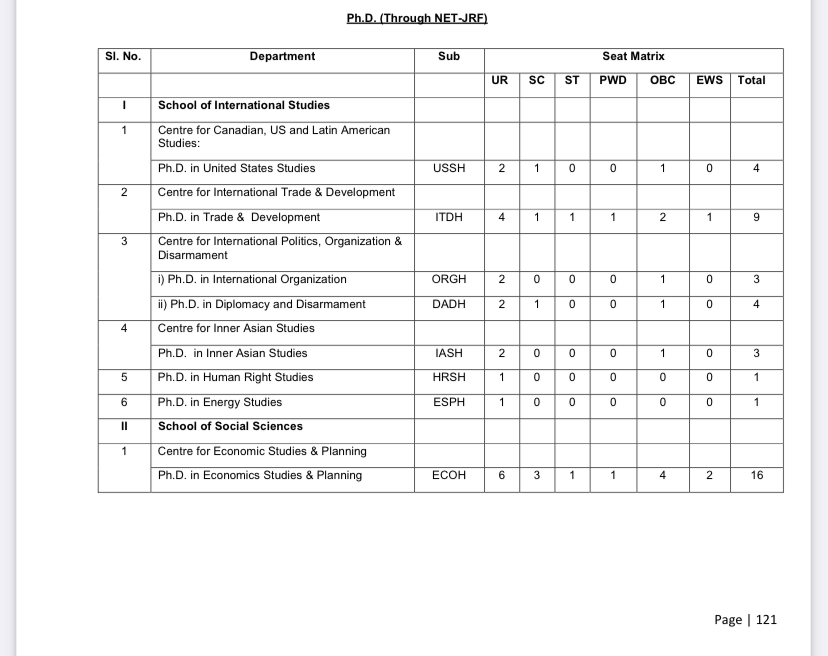 Citing an example, Ghosh said that the Centre for Study of Law and Governance released 19 seats for admissions and all are reserved for NET JRF qualified candidates. A summary look at the prospectus suggests that at least four centres -- Centre for Women Studies, Centre for Indian Languages, Centre for Studies in Law and Governance and PhD in Engineering -- have been largely affected.