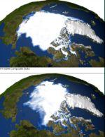 Scientists said the rapid loss was "remarkable" and could force experts to reassess how quickly the Arctic ice in the summer may disappear completely. They blame the loss on global warming, which has driven temperatures in the Arctic to record highs and summer ice extent to recent lows.